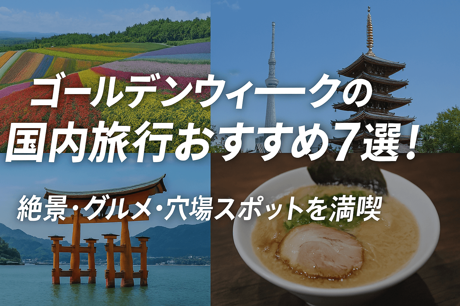 この記事では、家族旅行・カップル・一人旅など、さまざまな目的に合わせたおすすめの国内旅行先を紹介します。混雑を避けるコツや、現地の楽しみ方も解説するので、今年のゴールデンウィーク旅行の参考にしてください!